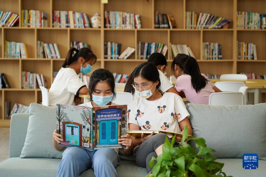 8月24日,威海市魏橋社區的孩子在社區兒童生活館內閱讀。