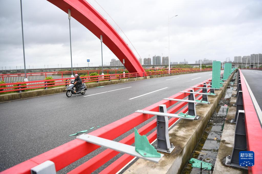 8月25日,在廣東陽(yáng)江市漠陽(yáng)江東河大橋,一些護欄被臺風(fēng)損壞。