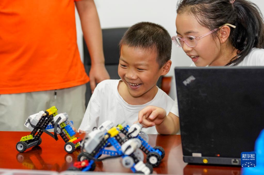 8月24日,在重慶豐都縣高家鎮汶溪社區黨群服務(wù)中心內,兩名加入家庭教育互助會(huì )的孩子在用智能小機器人進(jìn)行競速比賽。