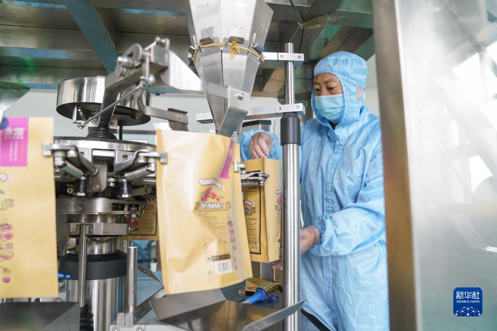 在黑龍江省大興安嶺地區加格達奇區一家山野珍品科技開(kāi)發(fā)企業(yè),工人對林下綠色有機食品進(jìn)行加工作業(yè)(8月24日攝)。