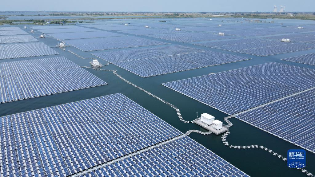 8月25日拍攝的潁上縣毛圩水上光伏電站(無(wú)人機照片)。