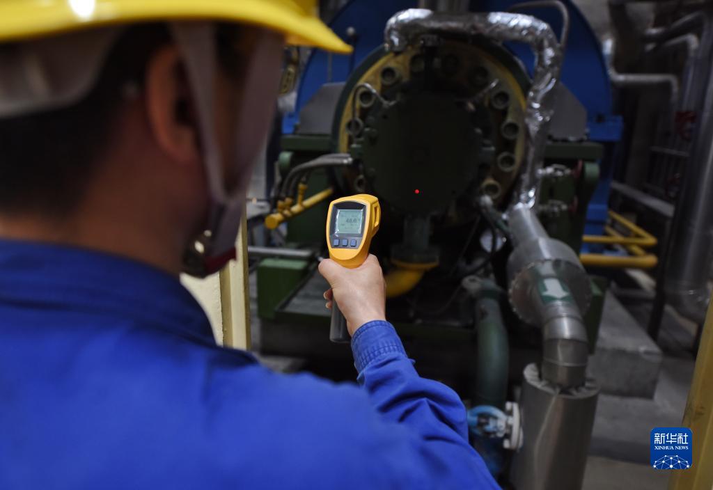 8月25日,國能成都金堂發(fā)電有限公司職工在生產(chǎn)廠(chǎng)區檢測設備運轉溫度。