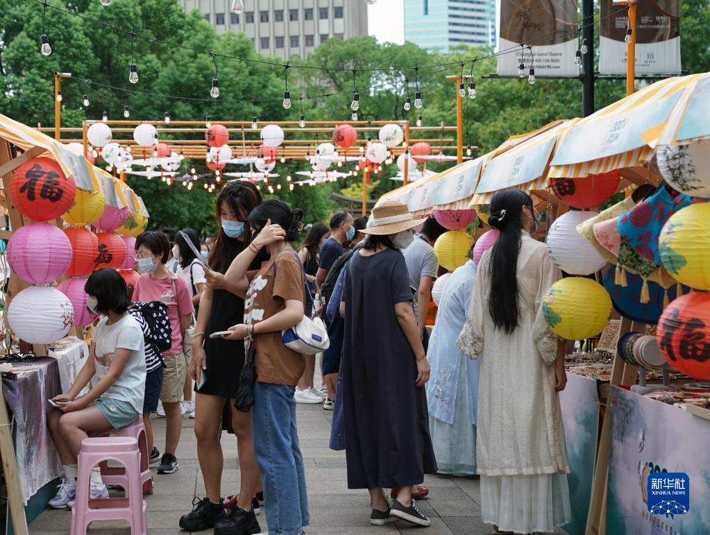 8月27日,人們在上海大劇院外逛藝術(shù)市集。