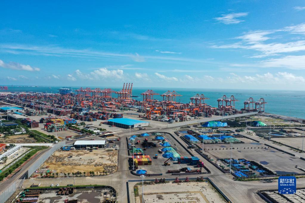 這是8月27日拍攝的位于平陸運河出??诟浇谋辈繛掣蹥J州港區大欖坪作業(yè)區(無(wú)人機照片)。