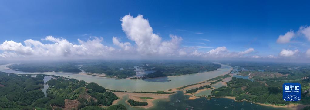 這是8月27日拍攝的平陸運河入口處平塘江口段水域(無(wú)人機全景照片)。