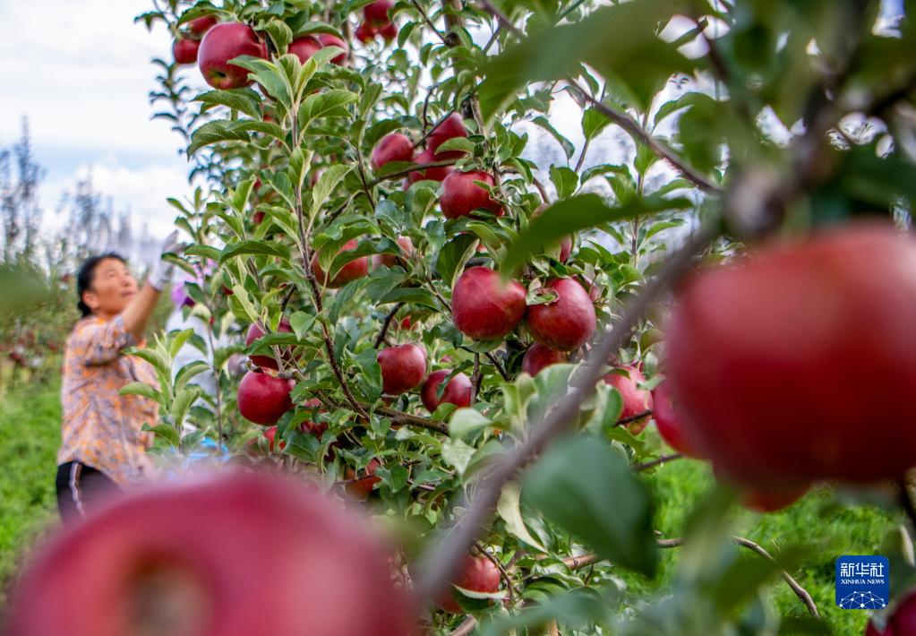 8月28日,農戶(hù)在大理市喜洲鎮大本農業(yè)蘋(píng)果產(chǎn)業(yè)研發(fā)基地采摘蘋(píng)果。