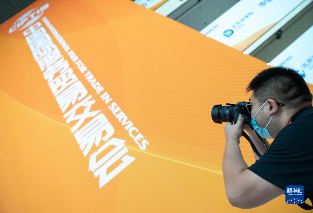 8月28日,在國家會(huì )議中心,記者在服貿會(huì )媒體探營(yíng)活動(dòng)中拍攝照片。