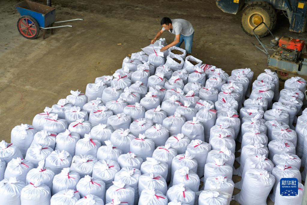8月25日,在遵義市務(wù)川縣分水鎮紅明村,工人在有機肥加工廠(chǎng)生產(chǎn)有機肥,為秋季補種作準備。