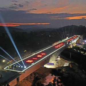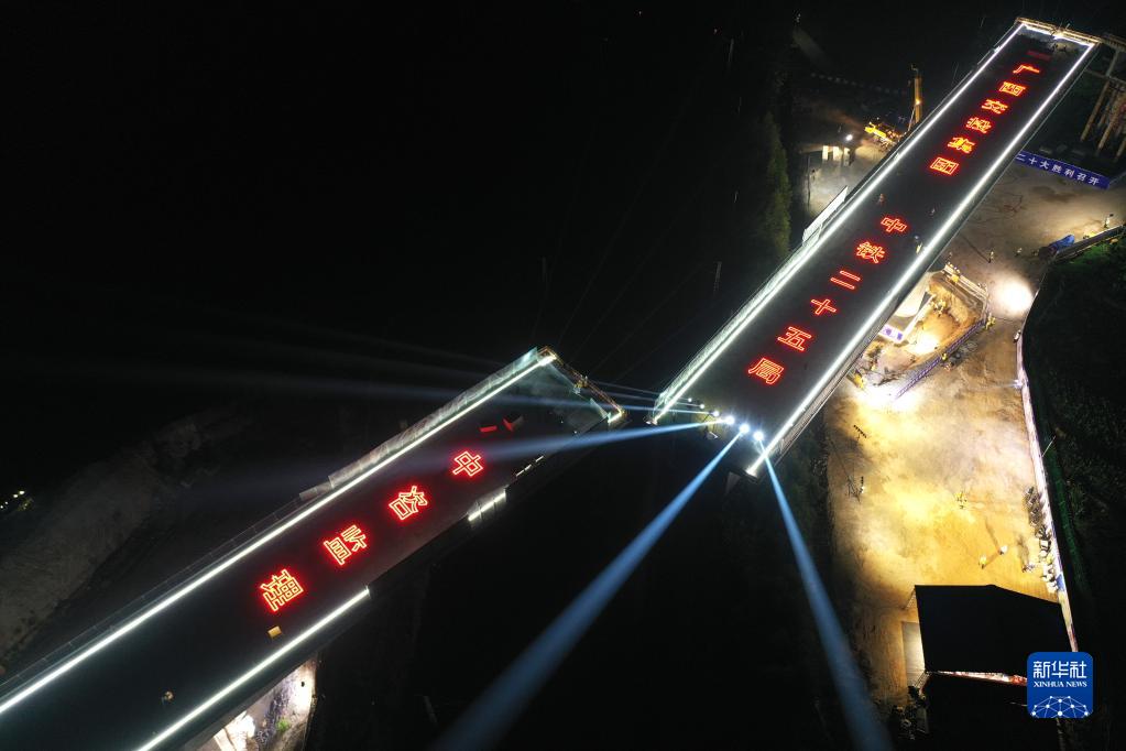 當日,廣西南(寧)玉(林)鐵路全線(xiàn)最大噸位雙幅轉體橋——福慶特大橋跨湘桂鐵路轉體橋在順時(shí)針旋轉后成功對接,兩幅對接后的轉體橋成為上跨湘桂鐵路的空中走廊,標志著(zhù)南玉鐵路建設取得重大突破。福慶特大橋全長(cháng)945米,轉體部分的橋梁梁體總長(cháng)220米,總重量超過(guò)1.2萬(wàn)噸。