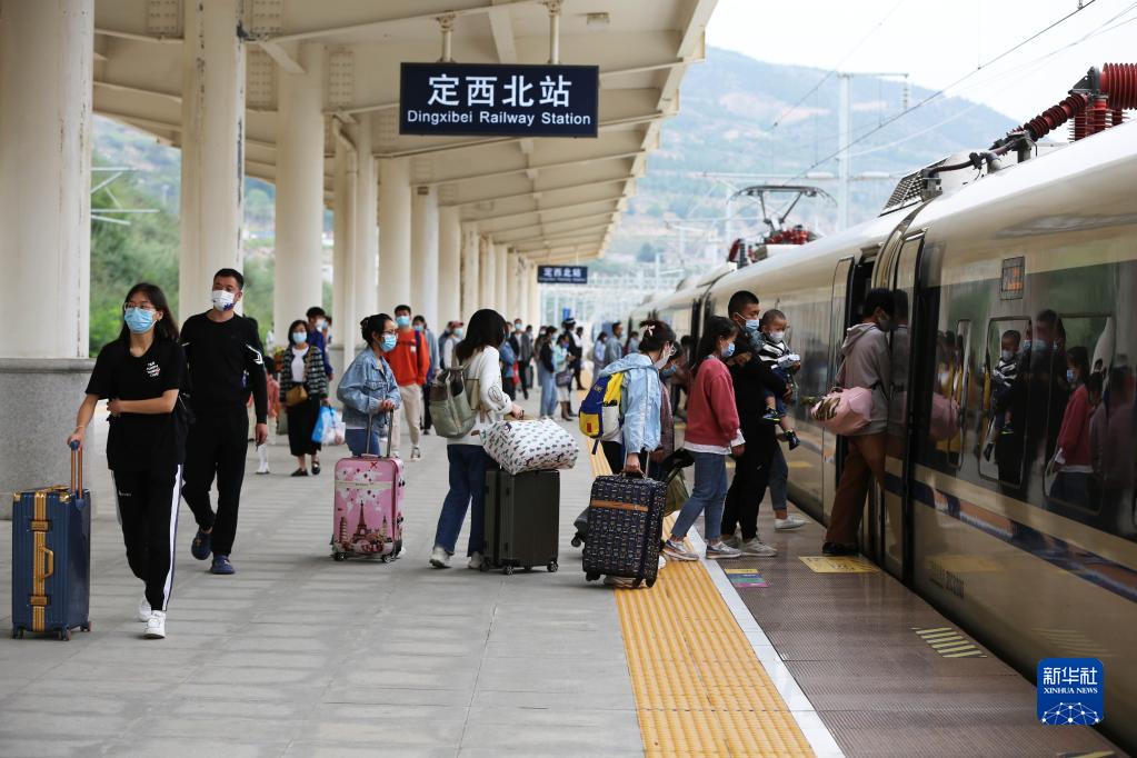 8月31日,旅客在寶蘭高鐵定西北站站臺乘車(chē)出行。