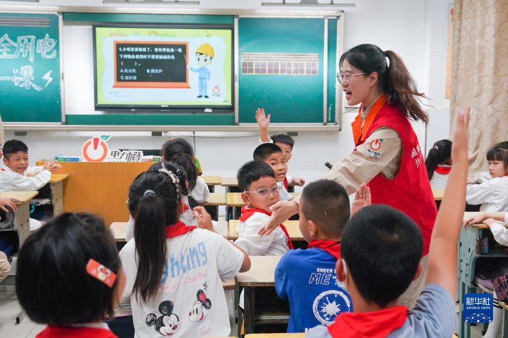 9月1日,江蘇省揚州市寶應縣供電公司的志愿者與寶應縣安宜實(shí)驗學(xué)校的學(xué)生進(jìn)行安全用電知識互動(dòng)問(wèn)答。