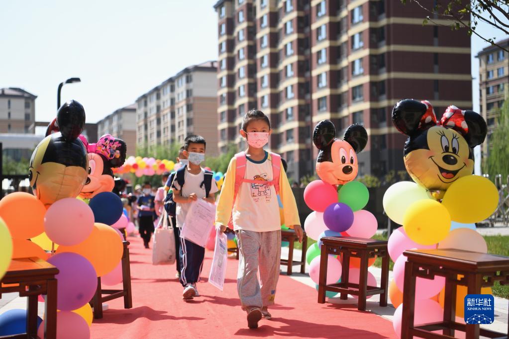 9月1日,河北雄安新區容東片區容和悅容小學(xué)學(xué)生步入校園。容東片區是雄安新區實(shí)施回遷安置的首個(gè)新建回遷片區。