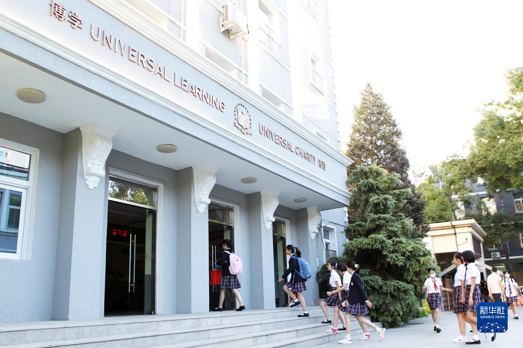 9月1日,北京師范大學(xué)實(shí)驗華夏女子中學(xué)的學(xué)生走進(jìn)教學(xué)樓。