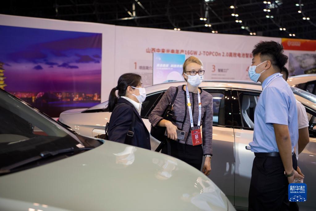 9月1日,參觀(guān)者在博覽會(huì )上了解一款新能源汽車(chē)的情況。