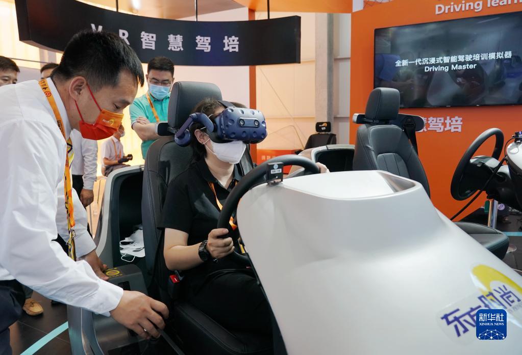 9月1日,參觀(guān)者在服貿會(huì )首鋼園區展館內體驗一款VR智慧駕駛培訓設備。新華社記者 張晨霖 攝