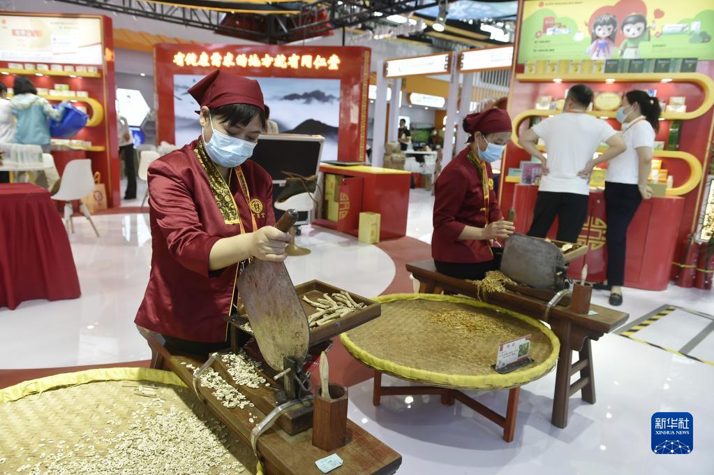 9月1日,在2022年服貿會(huì )首鋼園區,工作人員演示中藥材加工技藝。新華社記者 魯鵬 攝
