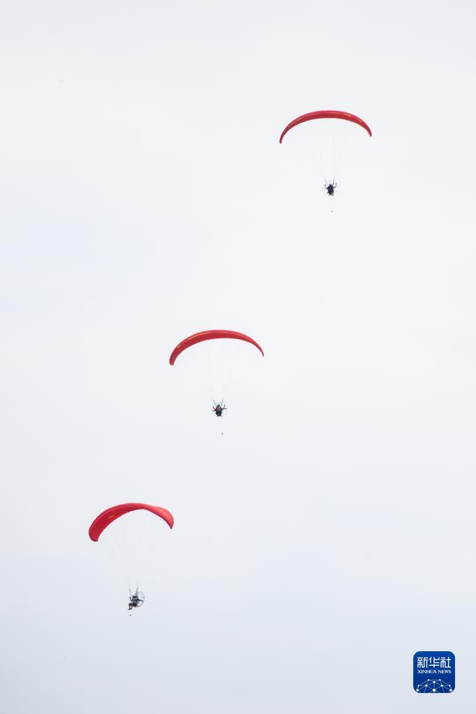 9月1日,在湖南株洲蘆淞機場(chǎng),動(dòng)態(tài)飛行表演隊隊員進(jìn)行表演。
