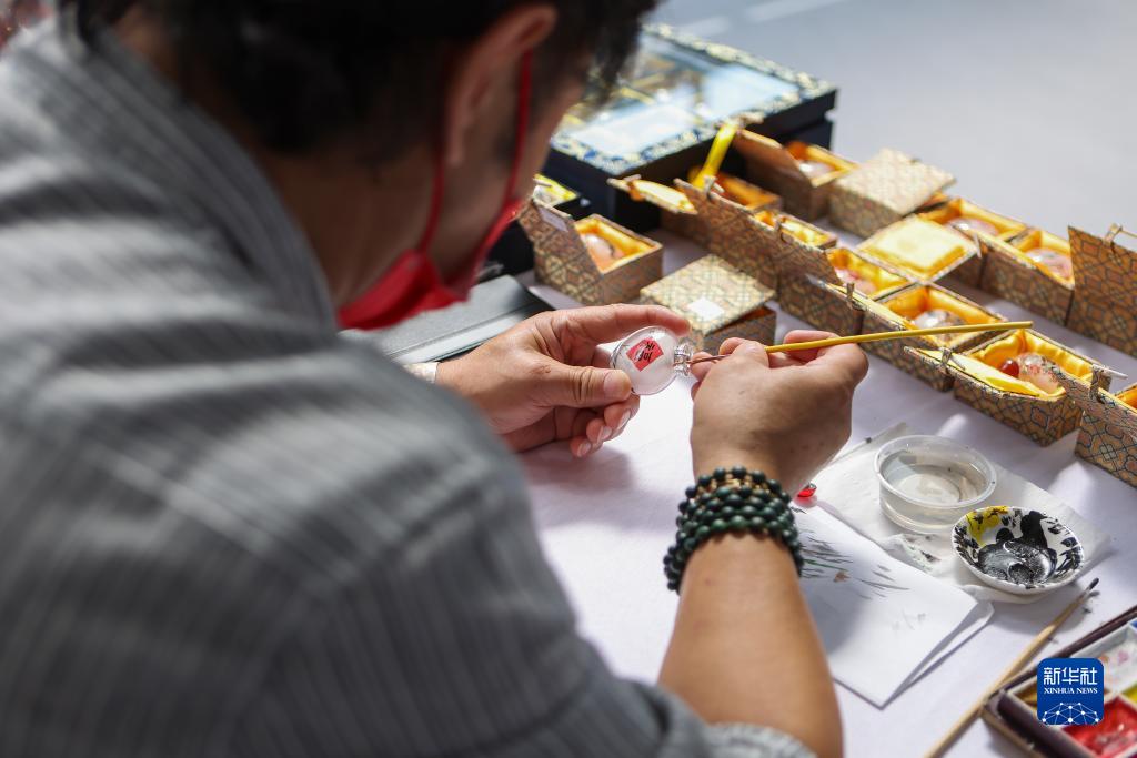 9月2日,在服貿會(huì )文旅服務(wù)專(zhuān)題展區,非遺傳承人在進(jìn)行內畫(huà)創(chuàng )作。新華社記者 郝昭 攝