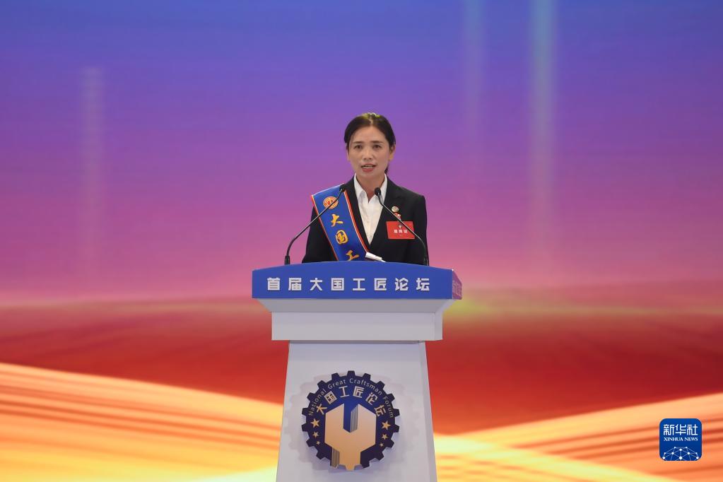 9月2日,大國工匠代表易冉在開(kāi)幕式上宣讀致全國各行各業(yè)工匠和技能人才倡議書(shū)。新華社記者 薛宇舸 攝