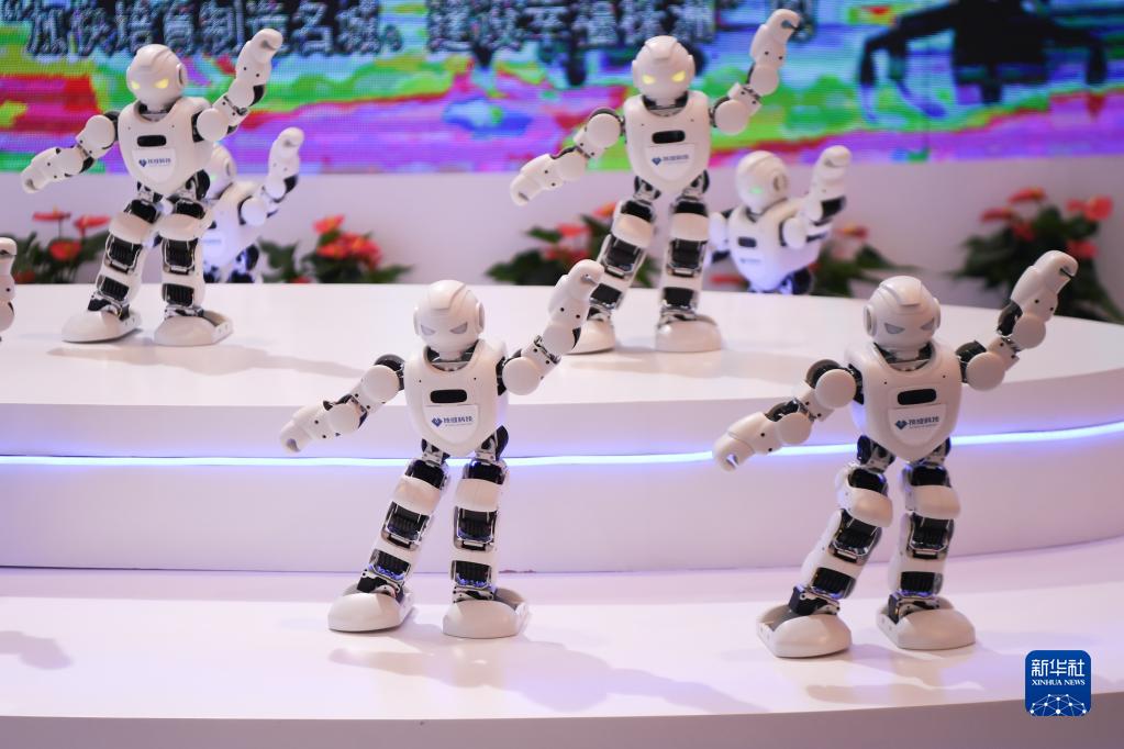 這是9月2日在論壇期間舉辦的湖湘勞模工匠創(chuàng )新成果展上拍攝的跳舞機器人。新華社記者 薛宇舸 攝