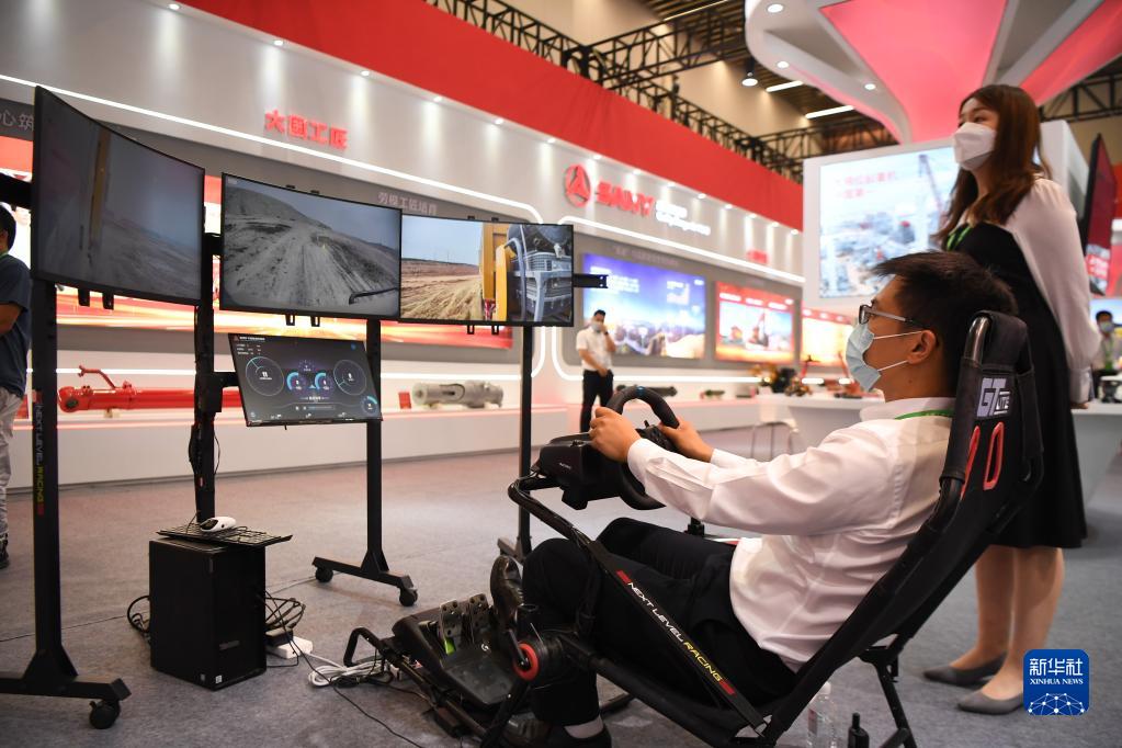 9月2日,參觀(guān)者在論壇期間舉辦的湖湘勞模工匠創(chuàng )新成果展上體驗遠程操控無(wú)人駕駛礦車(chē)。新華社記者 薛宇舸 攝