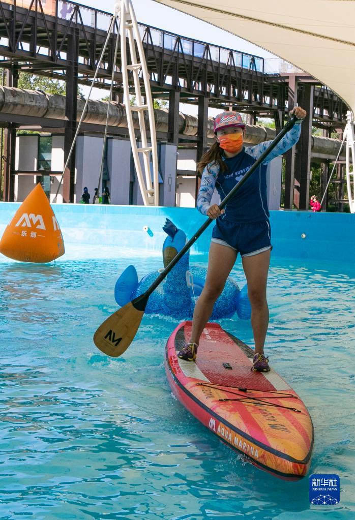 9月1日,一名教練在服貿會(huì )體育服務(wù)專(zhuān)題展區展示槳板運動(dòng)。新華社記者 張帆 攝
