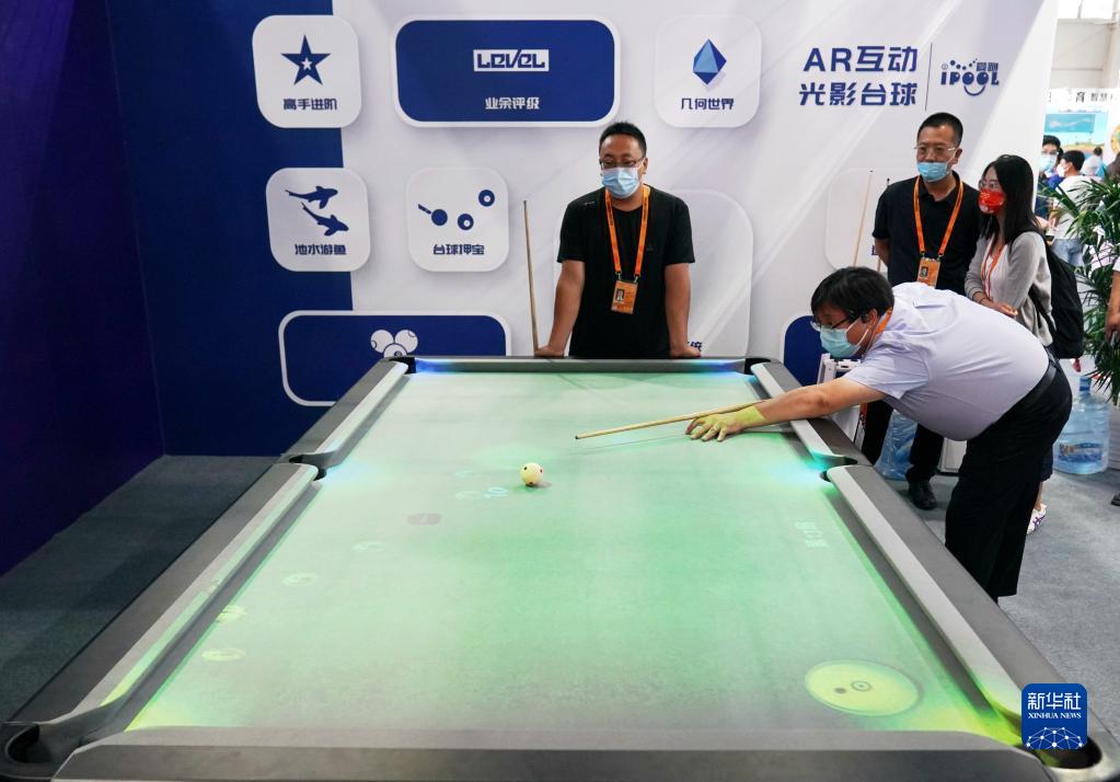 9月2日,人們在服貿會(huì )體育服務(wù)展館體驗AR互動(dòng)光影臺球。新華社記者 張晨霖 攝