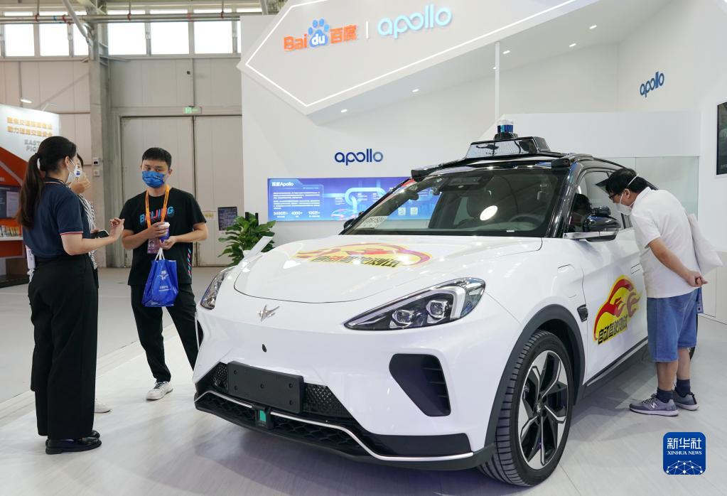 9月2日,參觀(guān)者在供應鏈及商務(wù)服務(wù)專(zhuān)題展區參觀(guān)一款自動(dòng)駕駛汽車(chē)。