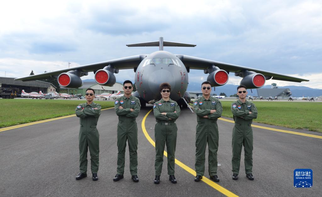 9月1日,在奧地利采爾特韋格機場(chǎng),中國空軍運-20機組人員在運-20前合影。