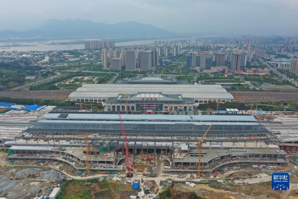 新建福廈鐵路福州南站施工現場(chǎng)(9月1日攝,無(wú)人機照片)。