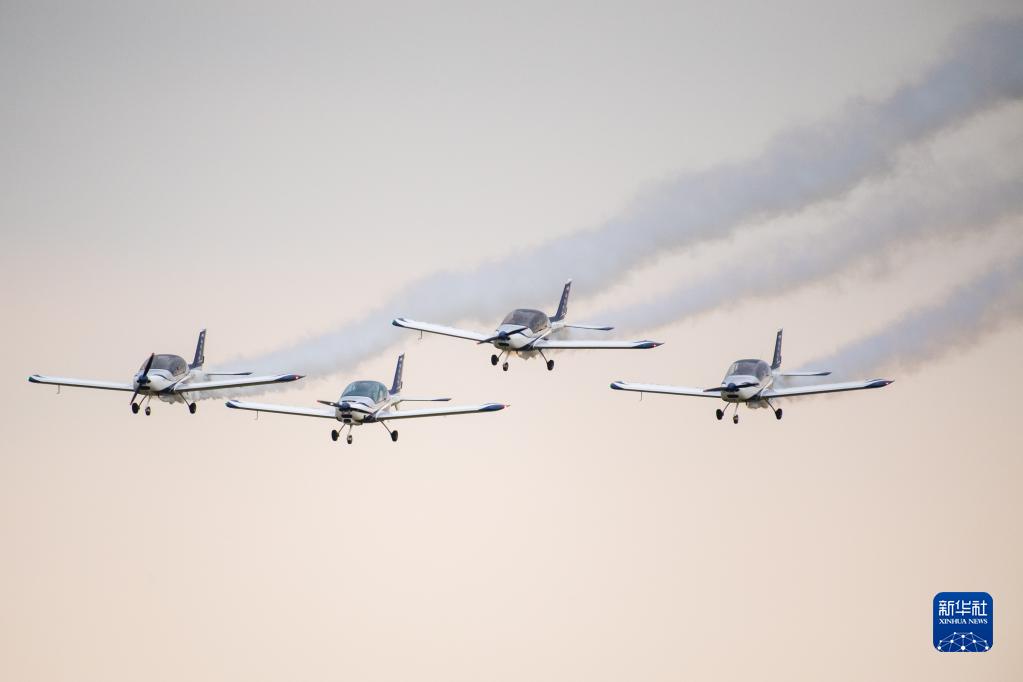 9月1日,在湖南株洲蘆淞機場(chǎng),飛行員進(jìn)行固定翼編隊飛行表演。當日,2022湖南(國際)通用航空產(chǎn)業(yè)博覽會(huì )開(kāi)幕。