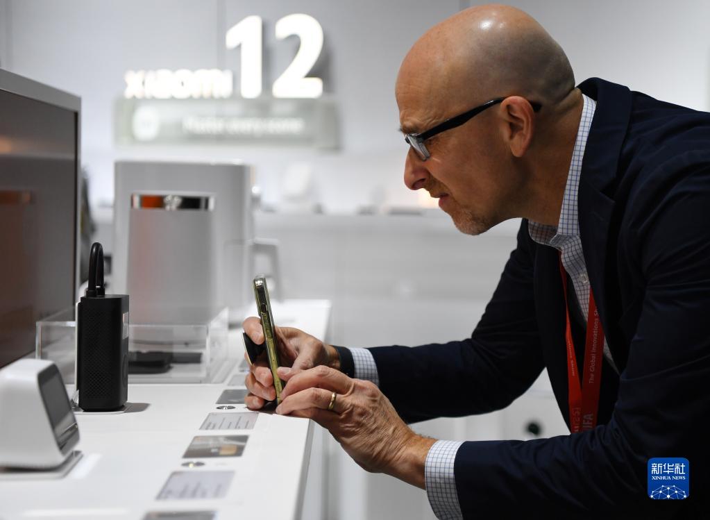 9月2日,在德國柏林國際消費電子展上,參觀(guān)者在小米展區拍攝一款產(chǎn)品。