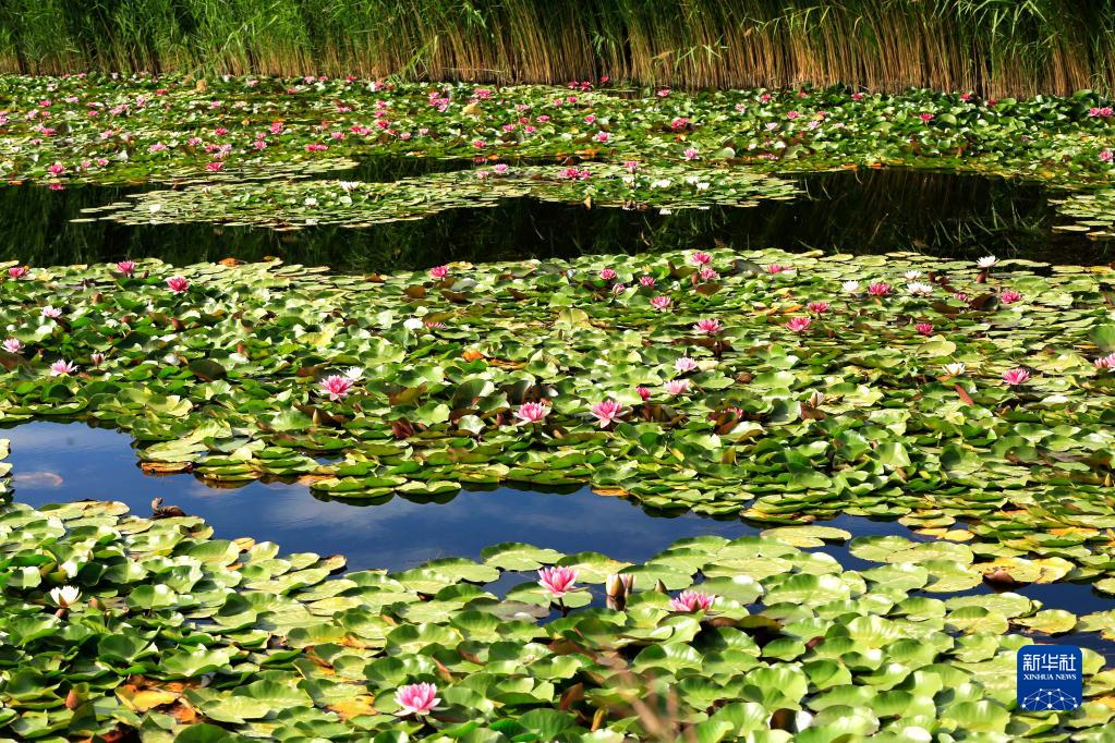 8月28日在甘肅張掖國家濕地公園蓮花池拍攝的睡蓮。