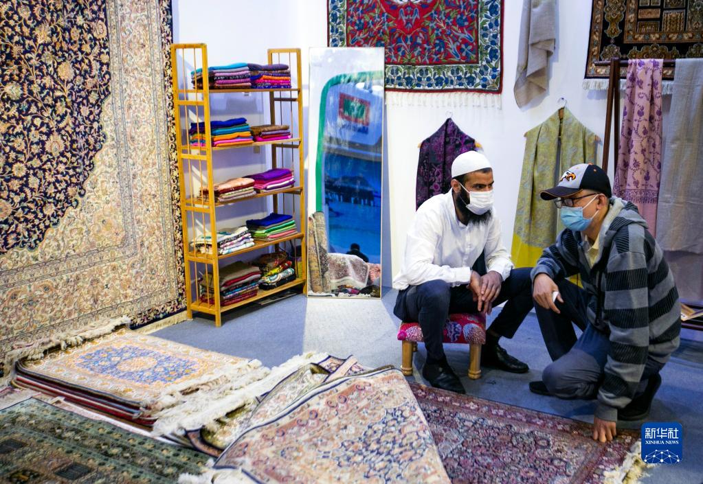 9月3日,參展商和參觀(guān)者在服貿會(huì )國家會(huì )議中心展館國別展區巴基斯坦展臺洽談業(yè)務(wù)。