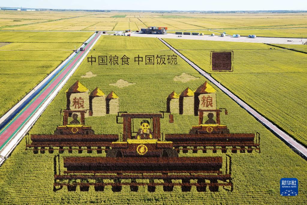 這是9月2日拍攝的富錦市萬(wàn)畝水稻科技示范園里的稻田畫(huà)。