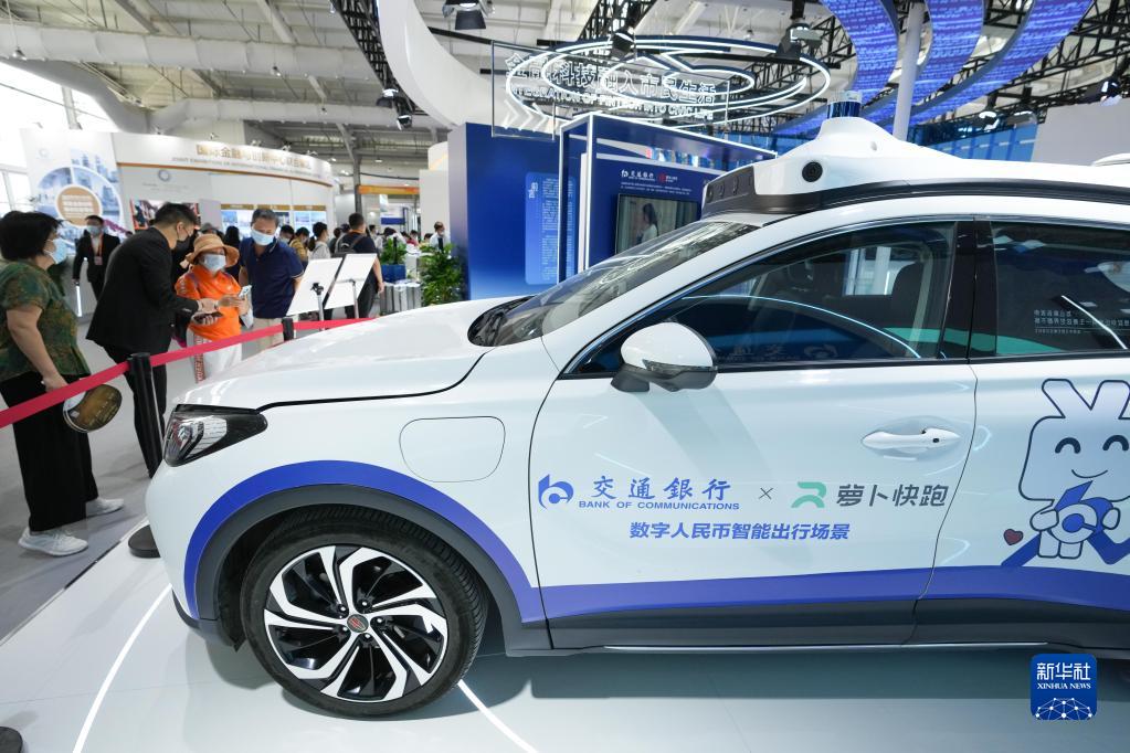 9月4日,參觀(guān)者在服貿會(huì )首鋼園區金融服務(wù)專(zhuān)題展了解交通銀行推出的數字人民幣交通出行場(chǎng)景。 新華社記者 鞠煥宗 攝