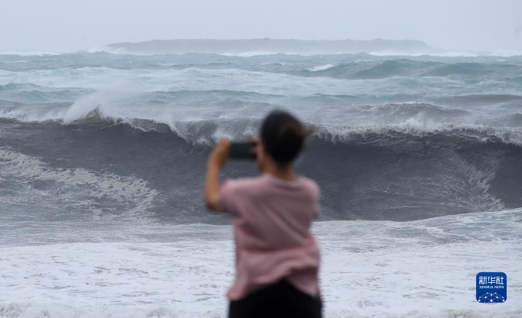 9月5日,市民在韓國濟州島西歸浦市附近海域拍攝海浪。