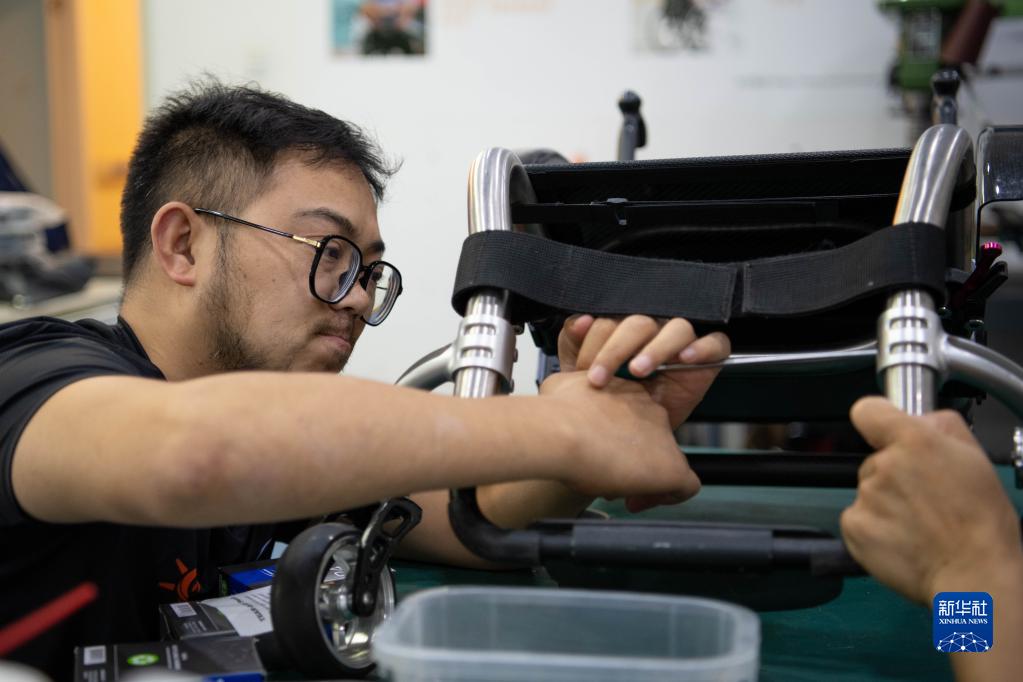 7月16日,在“川藏線(xiàn)”自駕出發(fā)前,何鵬檢修自己的輪椅。