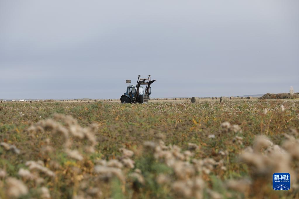 哈薩克斯坦北部地區9月進(jìn)入牧草集中收割的季節,成片的牧草被牧民收割、曬干并捆成草垛,以備牲畜在冬季食用。新華社發(fā)(奧斯帕諾夫攝)