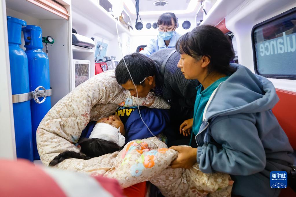 9月5日晚,在四川甘孜州瀘定縣磨西鎮的受災群眾臨時(shí)安置點(diǎn),人們轉運受傷群眾。