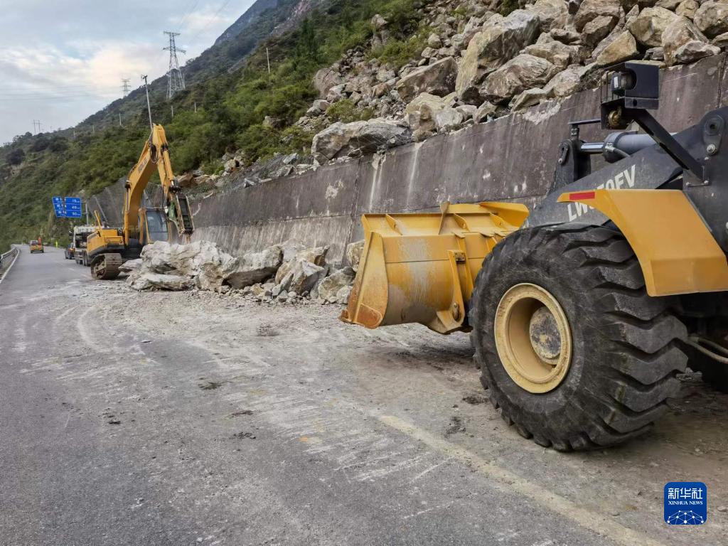 9月6日上午,工程機械在省道S217線(xiàn)瀘石路快速通道K30二里壩段進(jìn)行搶通作業(yè)。