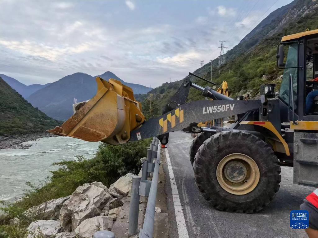 9月6日上午,工程機械在省道S217線(xiàn)瀘石路快速通道K30二里壩段進(jìn)行搶通作業(yè)。