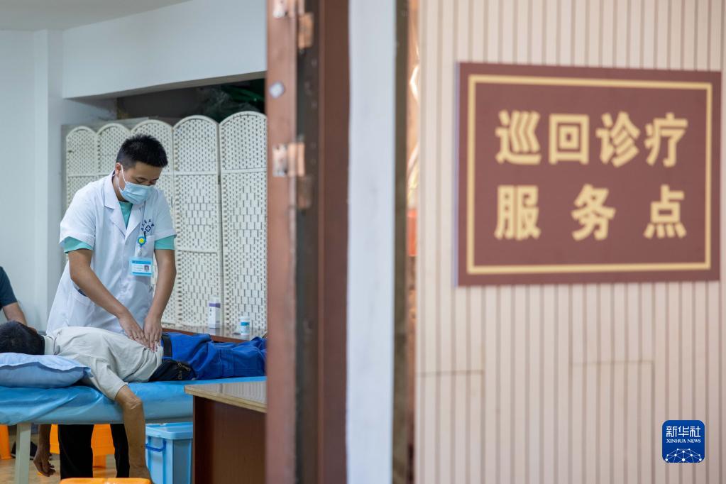 9月6日,參與巡回診療的醫生為武山村村民做按摩推拿。