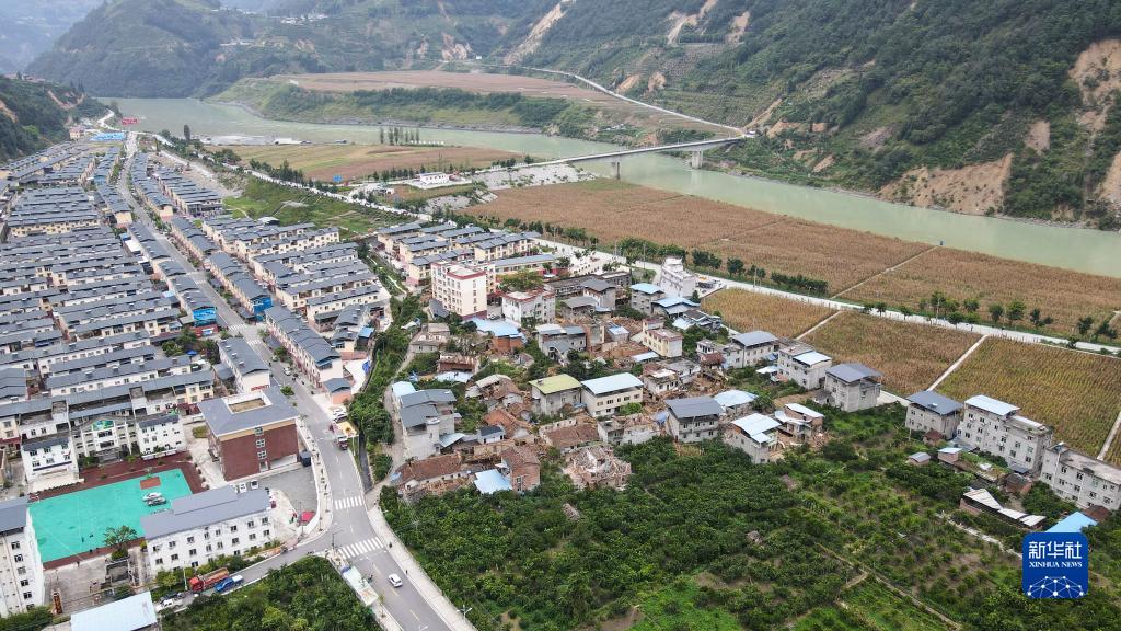 這張拍攝于9月6日的照片顯示石棉縣王崗坪鄉部分老舊房屋倒塌(無(wú)人機照片)。