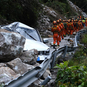 9月5日12時(shí)52分,四川甘孜藏族自治州瀘定縣發(fā)生6.8級地震,造成重大人員傷亡。地震發(fā)生后,四川森林消防總隊組織救援人員進(jìn)入災區開(kāi)展救援。新華社發(fā)(程雪力 攝)