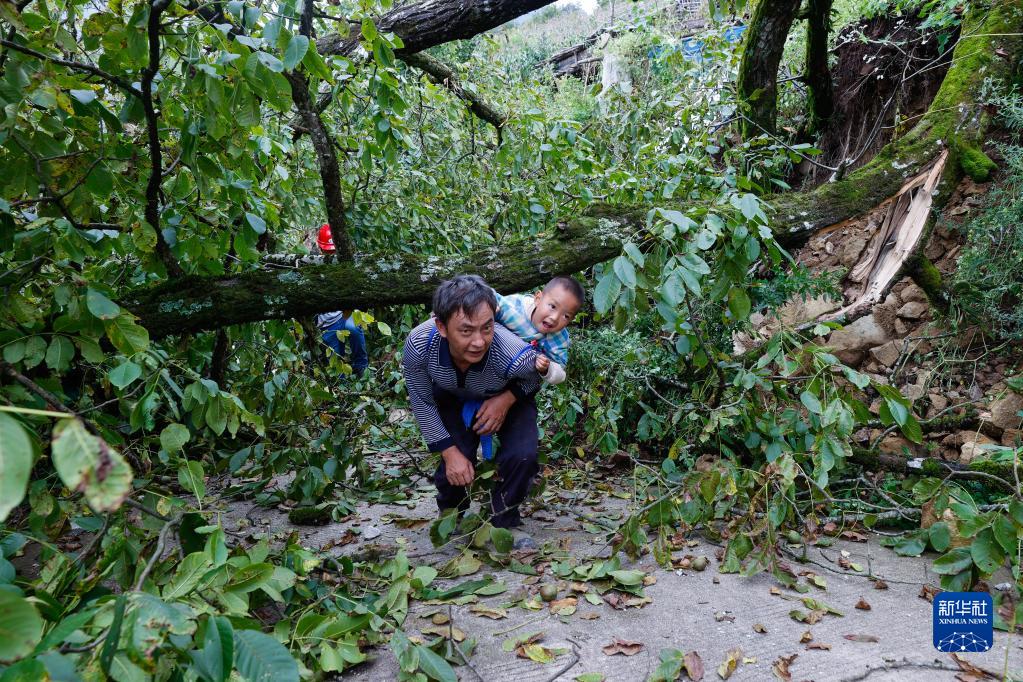 9月6日,瀘定縣得妥鎮灣東村村民向外疏散。