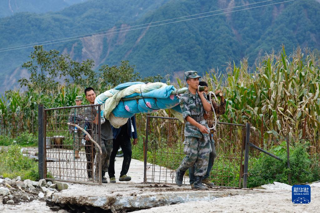 新華全媒+丨救援隊伍進(jìn)入瀘定縣得妥鎮展開(kāi)救援工作