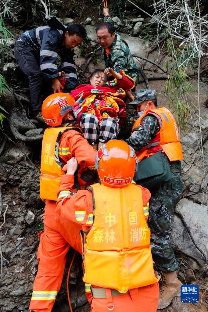新華全媒+丨救援隊伍進(jìn)入瀘定縣得妥鎮展開(kāi)救援工作