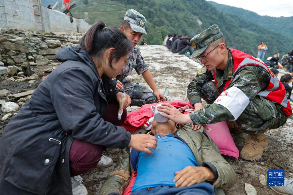 新華全媒+丨救援隊伍進(jìn)入瀘定縣得妥鎮展開(kāi)救援工作