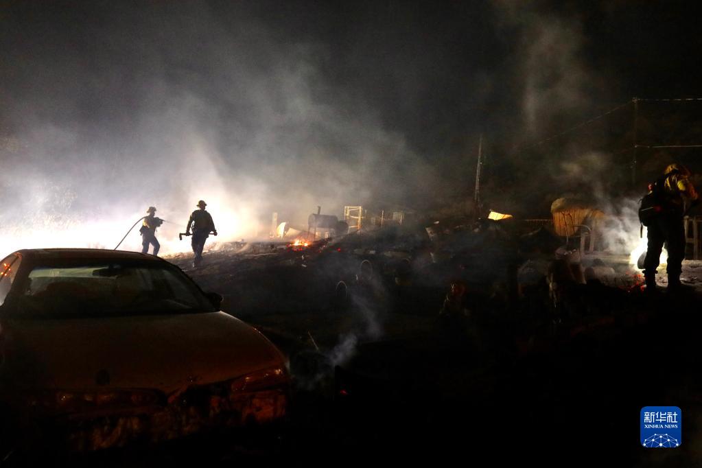 9月6日,消防員在美國加利福尼亞州里弗賽德縣一個(gè)社區滅火。新華社發(fā)